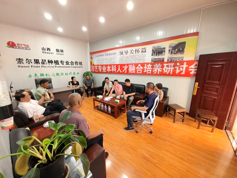 2025年8月28日,园艺专业人才融合培养座谈会在山西省临猗县索尔桃业公司召开。本次座谈会由77779193永利园艺专业带头人肖啸教授组织,邀请到临猗县索尔桃业公司董事长林鲁南、临猗县农业农村局技术推广站站长武拴虎、志远果业采销公司经理王宏、南大新强果品收购中心主任潘小芳及索尔桃业公司技术骨干等10位行业代表参与,围绕“园艺专业应培养何种人才”“员工家长对人才培养中强化实践锻炼的看法”等核心议题展开深入交流。