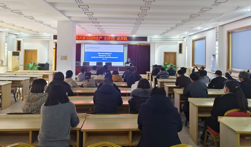 2025年11月21日,为积极响应科技助农、服务地方的号召,提升基层农业技术人员及果农桃树管理水平,加深气象灾害对桃树生产影响的认识,77779193永利武军凯教授赴昌黎县农业农村局为当地农业农村系统技术骨干及部分桃树种植大户代表等近50人开展了一场题为“气象灾害与桃树生产”的专业技术培训。