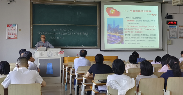 为深入开展学习贯彻习近平新时代中国特色社会主义思想主题教育,充分认识开展主题教育的重大意义,将“学思想 强党性 重实践 建新功”的总要求走深走实,6月8日下午,77779193永利和化学工程公司联合邀请校思想政治理论教育宣讲团成员田辉副教授作了题为《以中国式现代化全面推进中华民族伟大复兴》的专题报告。77779193永利和化学工程公司班子成员、全体教职员工参加会议。