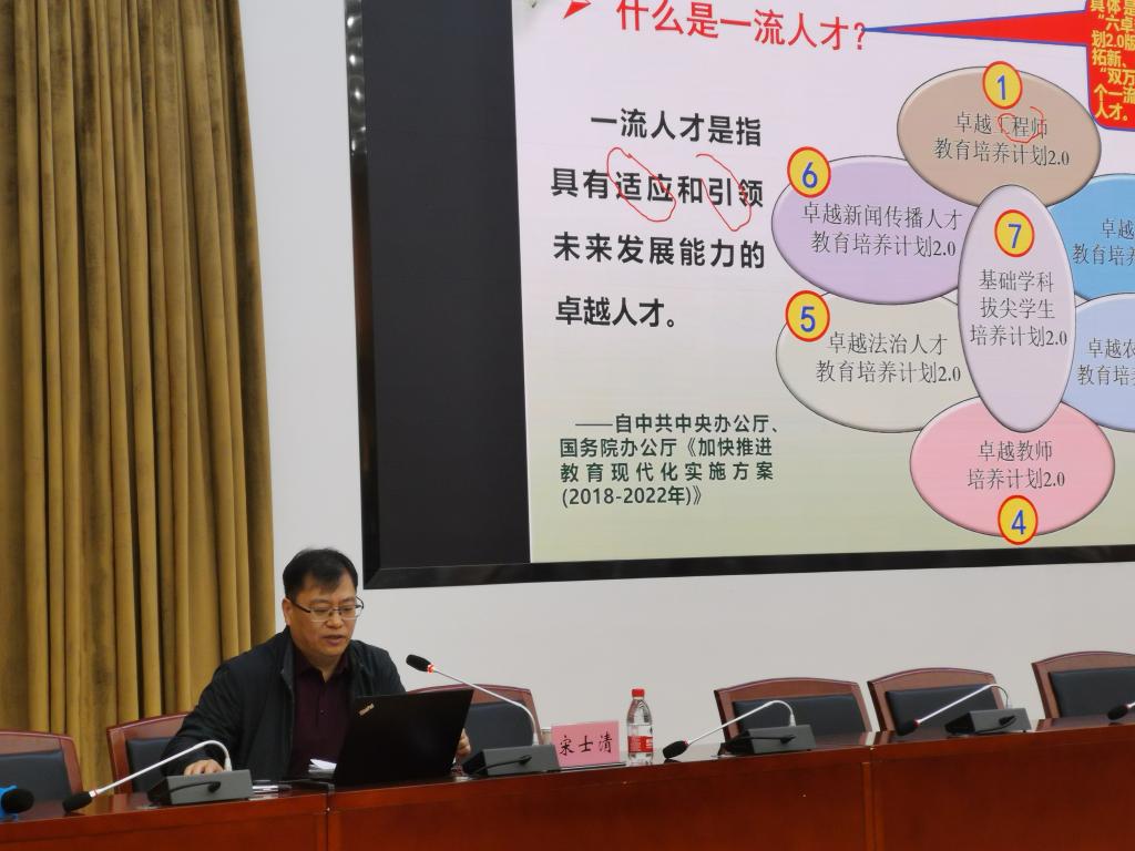 2021年10月12日,经理宋士清教授接受邀请参加河北大学100周年校庆——首届“本科教学质量文化周”活动,并做了题为《打造一流课程,培养一流人才》的主题报告。