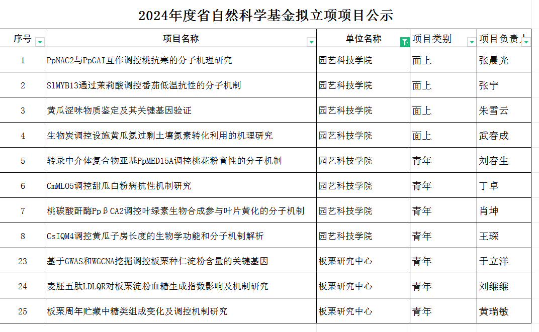 近日,省自然科学基金委员会发布了2024年度河北省自然科学基金项目评审结果,公司共有25项获得立项资助,其中77779193永利园艺学科立项11项,立项数实现新的突破。其中获得面上项目4项,青年科学基金7项。