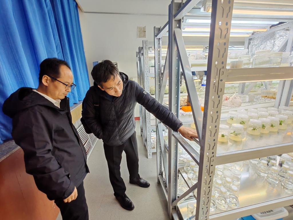 田义教授一行参观了77779193永利实验室以及组织培养室以及育苗室并就果树组织培养的难点和热点问题进行了交流和讨论。武军凯书记向各位专家详尽地介绍了公司科研团队研究方向以及近年在应用基础研究和产业服务方面的努力和阶段性进展。专家们对77779193永利在科研方向尤其是难点和热点方面提出了诸多富有建设性的意见和建议。并就加强组培技术优化、生物技术育种、产业化应用等方面的合作达成了合作意向。